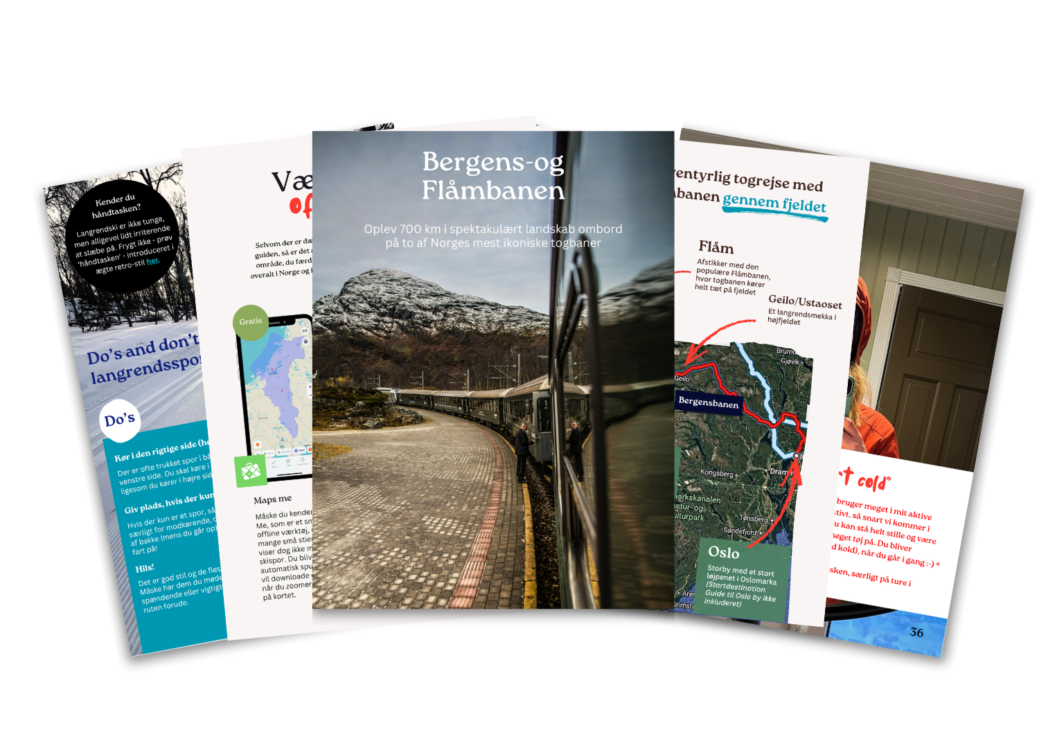 Kør over vidderne med Bergensbanen, tværs gennem sneklædte Hardangervidda, og fortsæt med Flåmsbanen ned mod fjorden. Stå af undervejs og spænd skiene på. Denne tur er for dig, der drømmer om bløde dyner af sne, så langt øjet rækker, flere hundrede kilometer langrendsspor og spektakulære fjelde. Bergensbanen krydser over højfjeldet - blandt andet med et stop på Finse station, som ligger 1.222 meter over havet og er den højest beliggende togstation i hele Norge. Undervejs kører du også med Flåmsbanen - kendt for at være en af verdens smukkeste og mest spektakulære togbaner med store stigninger og fjeldet helt tæt på. Ganske enkelt en tur, du bare må opleve mindst én gang (men det er sjældent nok. Jeg skal afsted igen!)